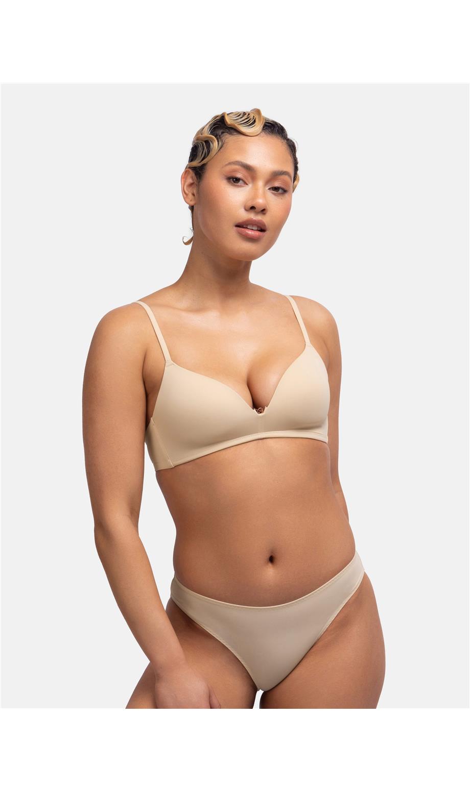 A praktikus, hízelgő formát keltő, enyhén párnázott Fili merevítő nélküli melltartó, újrahasznosított anyagból készült, középső részén rose gold Dorina virággal kiegészítve.
