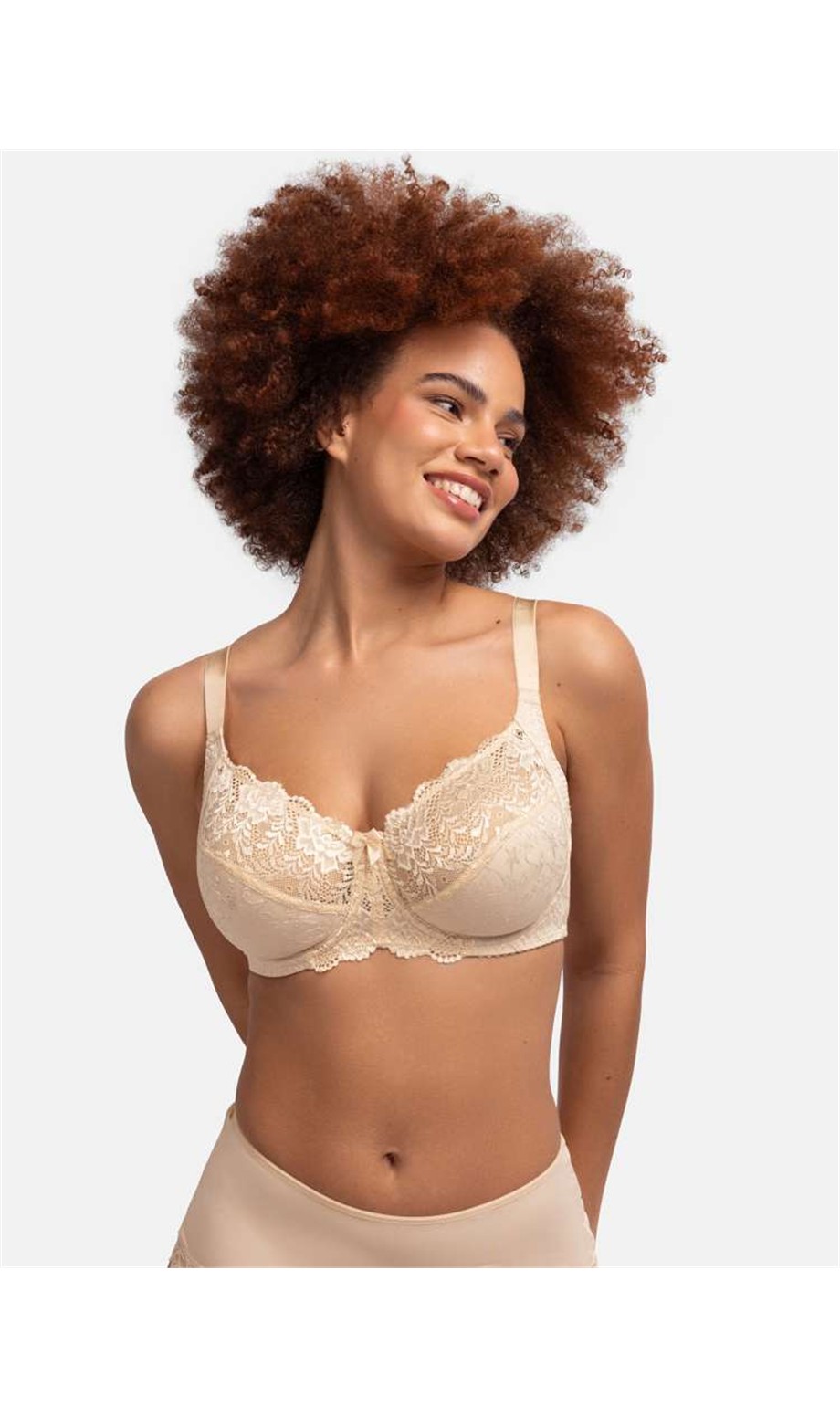 A PHILIPPA Wire Bra merevítős melltartó nőies és kifinomult. Jacquard mintás anyagból készült, gazdagon texturált virágos csipke és elegáns szaténmasni díszíti. A széles vállpántés a három részből szabott mellrész jól formáz és stabil tartást biztosít a nagyobb méreteknél is.