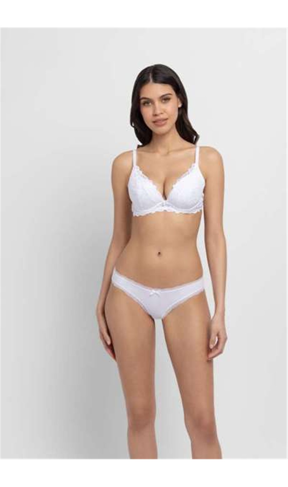 A pamutból készült Essential alsó a hétköznapi kényelmet nyújtja. A klasszikus szabású, puha tapintású anyag egész napos komfortot biztosít, míg a finom csipke szegély és az apró masni diszkrét, mégis elegáns megjelenést kölcsönöz.